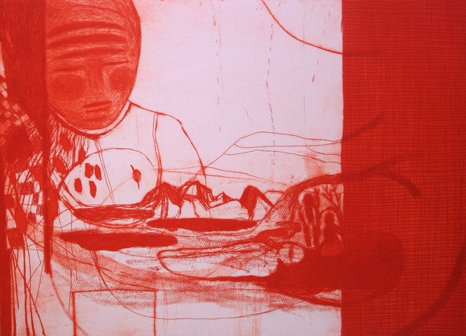 Rotes Zimmer, Radierungen, 2002, 35x50, Papier 50x70