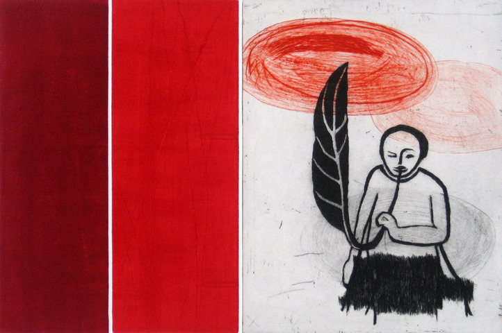 Rote Erde, Frabradierungen, 2004, 45x21, Papier 62x43